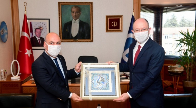 Eskişehir Sanayi Odası (ESO) Yönetim Kurulu Başkanı Celalettin Kesikbaş ve beraberindeki heyet, Anadolu Üniversitesi Rektörlüğüne atanan Prof. Dr. Fuat Erdal’ı ziyaret etti.